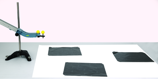 Pro studium zachování hybnosti ve dvou rozměrech lze na konec zakřiveného konce rampy s kuličkami namontovat 2D kolizní příslušenství, které umožní kuličce kutálející se po rampě narazit na druhou kuličku.